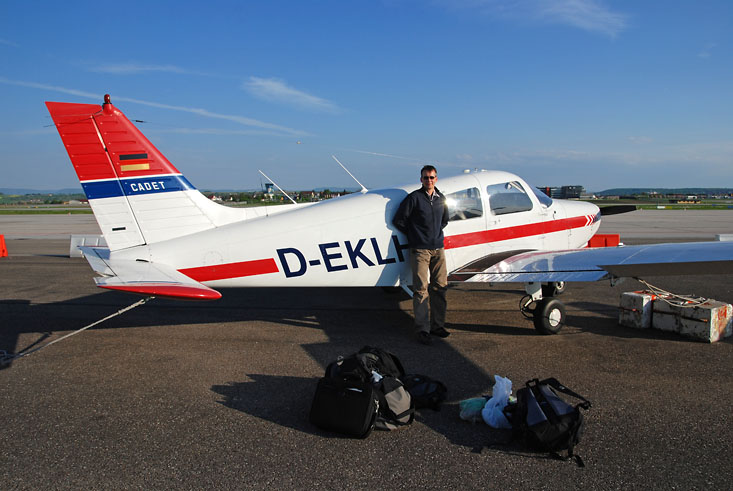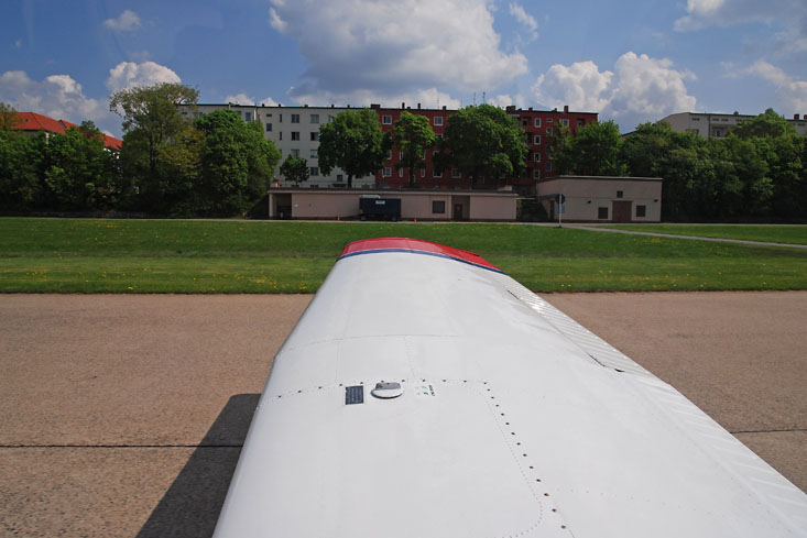 Nach den üblichen Vorbereitungen hob die PA-28 um 08:23 local time auf der Stuttgarter Rwy 07 ab und verließ die CTR über Echo. Es folgte ein ruhiger Flug durch die klare Morgenluft. Lediglich wenige flache Nebel- oder Dunstfelder waren gerade dabei, sich unter Umwandelung in stratus fractus über die Hügel zu erheben, um sich anschließend rasch ganz aufzulösen. Während auf dem Hinflug eine eher niedrige Flugroute geplant war, sollte es jetzt etwas höher sein, also 5000 ft und höher. Auf dem Weg lagen damit Luftraum Delta über Leipzig und Luftraum Charlie über Nürnberg. Dazwischen eine Landung in Hof. Vor dem Abflug war noch etwas Zeit, auf dem Vorfeld Photos zu machen, zur Zeit des Checks der Maschine hatte sich eine Schlage von etwa 10 Flugzeugen am Rollhalt gebildet. Wie kaum anders zu erwarten war, wurde uns die angefragte Abflugroute über Schönefeld im letzten Moment doch nicht genehmigt. Es wurde auf beiden Bahnen in kurzen Abständen gestartet und wir verließen die Kontrollzone wie vom Veranstalter empfohlen wieder über die Whisky-Route. ![]() Westliches Vorfeld am Abflugtag ![]() ![]() "D-LH: Runway zero-niner-left cleared for take-off" ![]() Blick auf die Innenstadt, Vordergrund: Neuköllner Maientage (Frühlingsfest in der Hasenheide) ![]() Lord Norman Foster, Architekt: "Tempelhof is the mother of all airports" ![]() vorne: Ehemalige Grenzkontrollstelle Dreilinden (Berliner Seite) für Transit durch die DDR; sonst: Kleiner Wannsee, Großer Wannsee, Schwanenwerder, Kälberwerder, Pfaueninsel, Havel; hinten: Ortsteile Glienicke und Kladow ![]() A5500 Airspace D über Leipzig ![]() Leipzig ![]() Verheilende Narben: Ehemaliger Braunkohletagebau Zwenkau, die derzeitige Flutung wird mehrere Jahre dauern, ein Erholungsgebiet soll entstehen. Über Leipzig wurde uns Altitude 5500 ft zugewiesen, Nürnberg wurde später an der Oberkante von Airspace C über der CTR in FL70 überflogen. Nach Tanken und einem dicken Stück Torte in Hof folgte das letzte Stück zurück nach STR. Es ging über Dinkelsbühl, Ludwigsburg und dann ohne zu warten direkt in den Anflug zur 07. ![]() Ausräumen, Putzen, Festmachen, ein gelungenes Wochenende geht zu Ende. Abends erhielt ich einen Anruf aus Berlin, solle mir doch die mitgenommene Zeitung noch einmal genauer ansehen: Ach du Schande - Es hatte uns doch erwischt! (Name zwar falsch geschrieben, aber was soll's!) Berliner Morgenpost am 04.05.2008 |