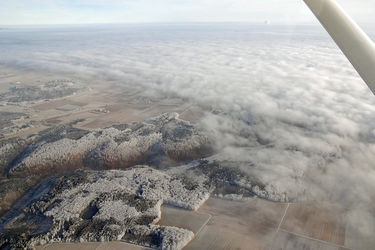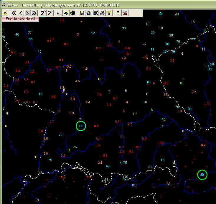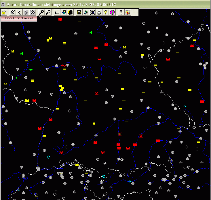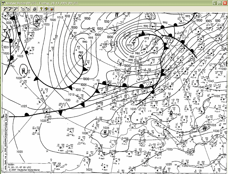 Gute VFR-Wetterbedingungen im Winter sind nicht selbstverständlich. Oftmals lassen sich brauchbare Vorhersagen nur relativ kurzfristig erstellen, was eine grobe Planung einige Tage im Voraus sehr erschwert (nicht zu verwechseln mit der eigentlichen Flugwettervorbereitung vor dem Start). So sind Hochdruckgebiete in den Wintermonaten alles andere als ein Garant für gute Sichten und passende Wolkenuntergrenzen. Meist gibt es bei beginnendem Hochdruckeinfluss nur Zeitfenster von ein bis zwei Tagen, bis sich Nebel oder Hochnebel ausbreiten und VFR-Flüge unter anderem in vielen Flußtälern Süddeutschlands unterbinden. Günstige Verhältnisse trifft man beispielsweise in Fällen an, wenn im Vorfeld eines neuen, langsam heranziehenden Tiefs ein südlicher bis westlicher Wind mit ausreichender Mindestgrundströmung vorherrscht, dabei in den unteren Luftschichten recht trockene Luft beteiligt ist und dichte Bewölkung die fragliche Region zunächst noch nicht erreicht. Es muss also eine ganze Menge passen - ein solcher Fall lag am 28.12.2007 vor.