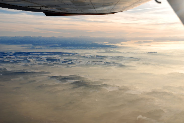 Bildbericht: Über Wolken, Nebel und schneebedeckten Alpen